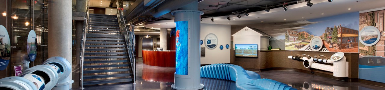 Polysonics provided multi-faceted conference, training and education rooms interior acoustics, HD video presentation and speech reinforcement and audio playback systems, HD video conferencing, AV remote control systems and building wide digital signage design for the environmental center. Included in the design were seventy-nine offices, eight small, five medium, and one large conference rooms, along with two large training areas, an education area and main lobby.