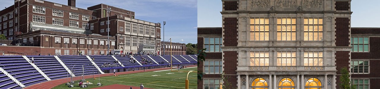 The existing historically and culturally significant building was modernized for state-of-the-art teaching environments for the 21st century. With a capacity of 1,100 students, the complete modernization includes 350,000 gross square feet of existing historic infrastructure and a 42,000 square foot gymnasium addition. The addition was arranged to be a sympathetic structure to the historic building configured to appear as a continuation of the base building.